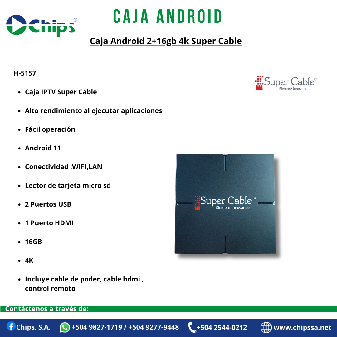 CAJA ANDROID 2+16gb 4K SUPER CABLE H-5157